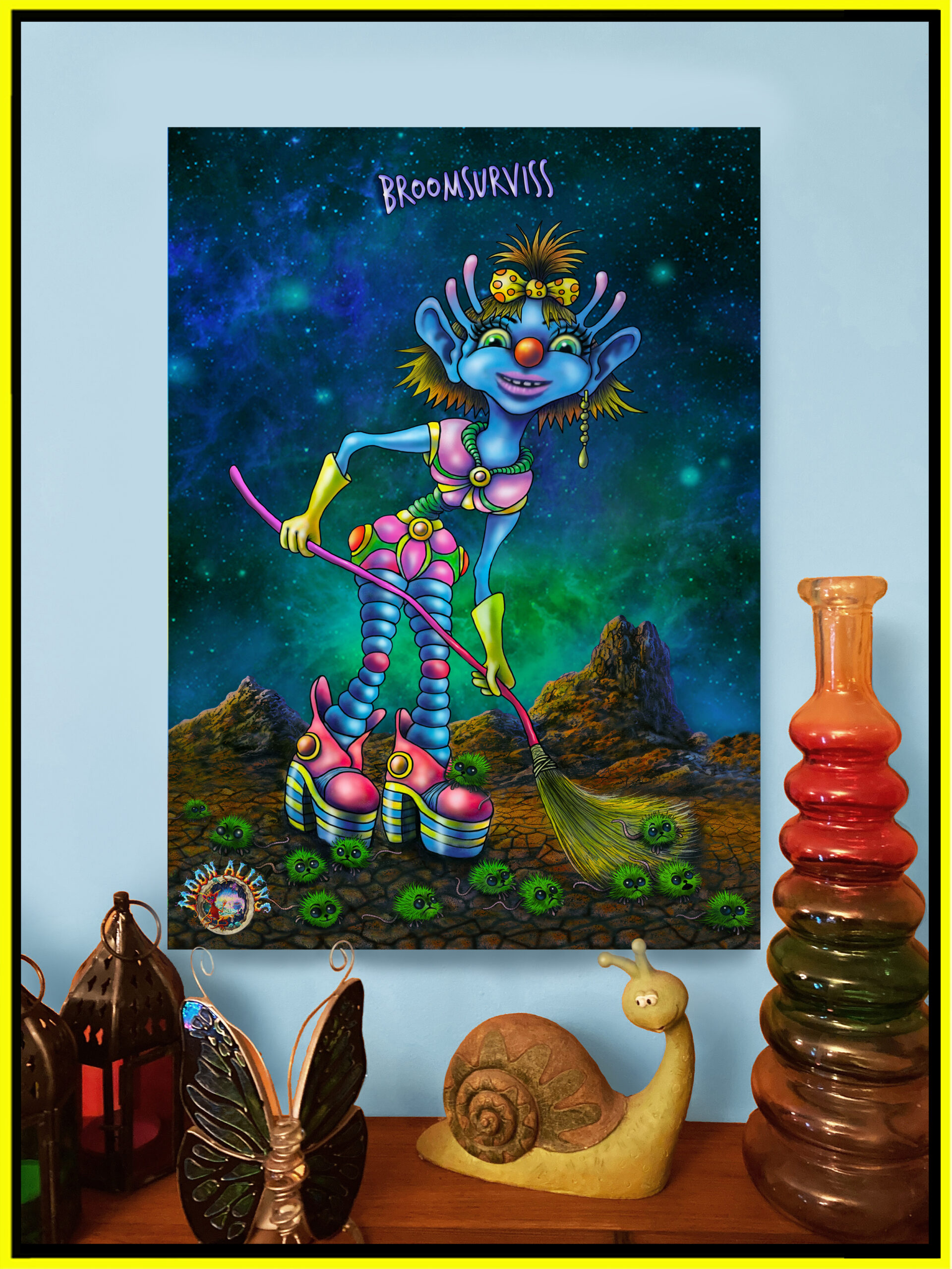 Broomsurviss was once a waitress at the infamous Cosmic Café, but she got sacked for being too tidy and well mannered. Everywhere she goes, she will carry a broom as she hates disorder and untidiness